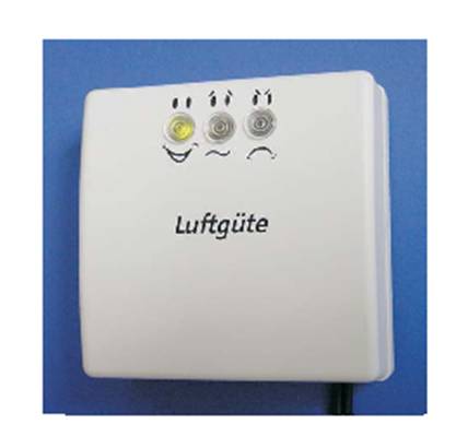 There is a simple green/yellow/red traffic light system with sad and happy faces illustrated on the front of the housing, which simply shows if additional ventilation is needed in the room. This monitor is popular for schools and offices, to determine when windows should be opened to increase air flow and improve concentration!