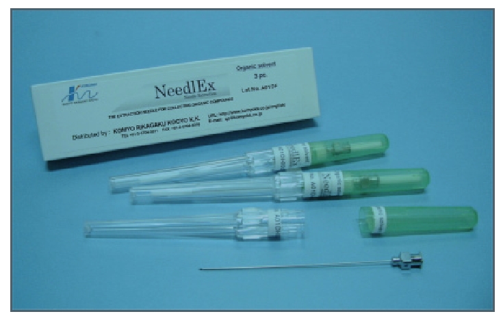 An extraction needle for collecting Volatile Organic Compounds (VOCs) in conjunction with the AP20 sampling pump.
