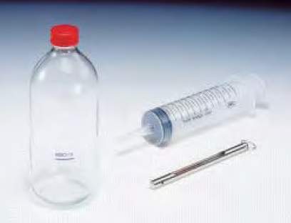 This simple set is for determining the concentration of solvent in drainage and underground water by measuring the head space gas. The kit includes: