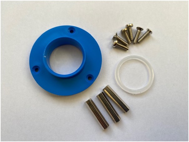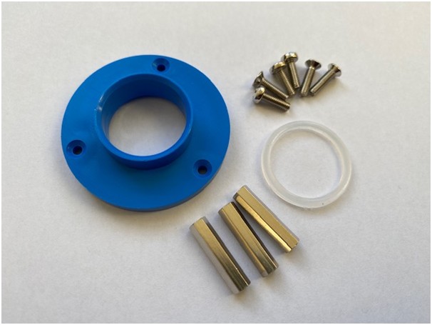 The installation kit includes an installation ring and 3 distancing bolts. The installation ring are predrilled for the included bolts.